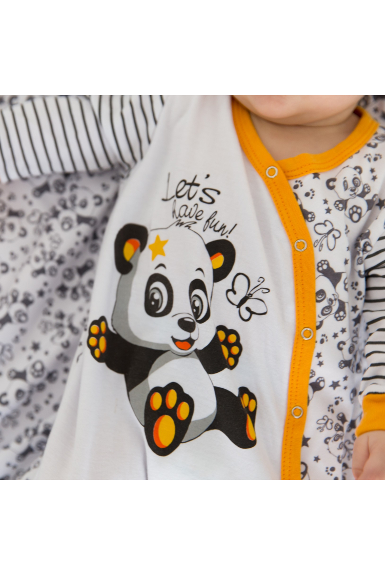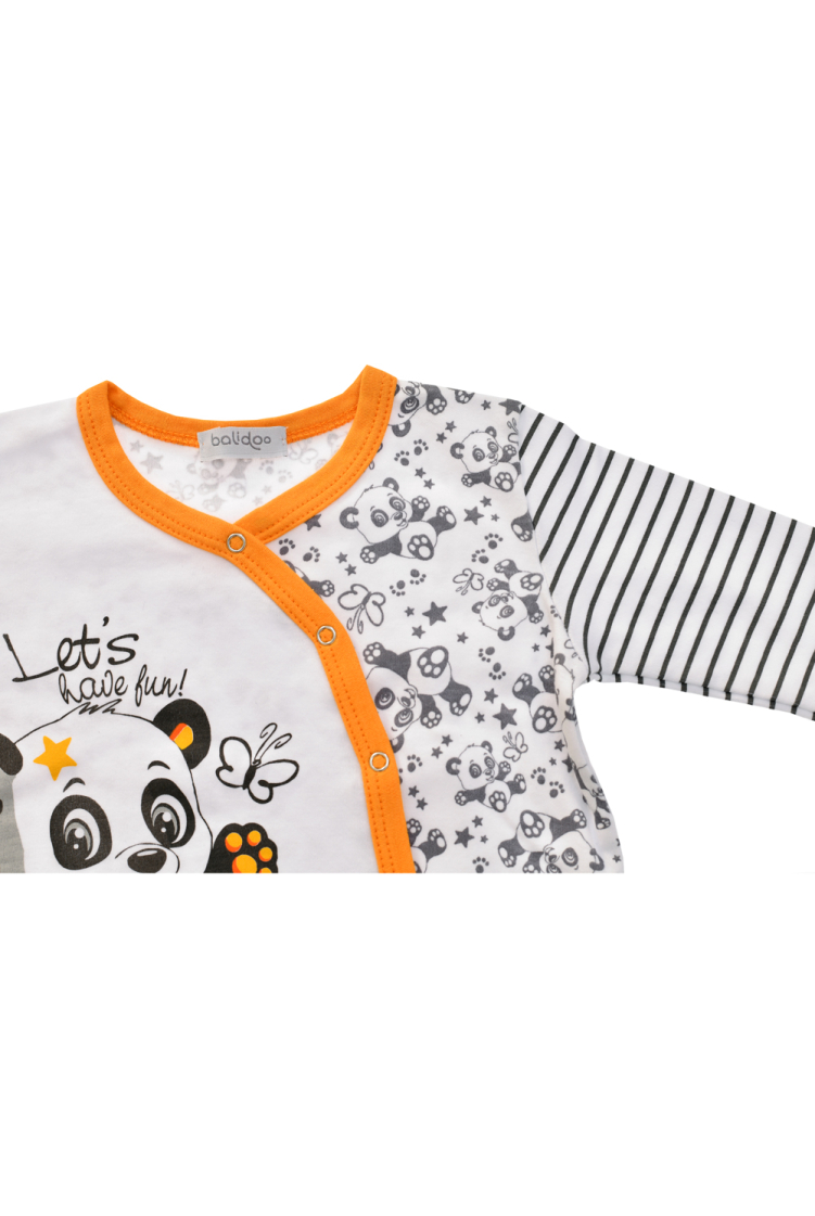 Bodi dugih rukava s tiskom. Kopčanje na drukere u vratnom dijelu te kopčanje između nogu. Kontinuira..