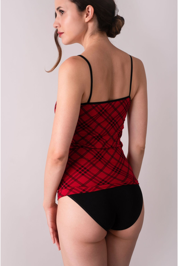 Dodaj u košaricuPotkošulja s tankim naramenicama je izrađena od laganog i prozračnog materijala modernog kariranog u..